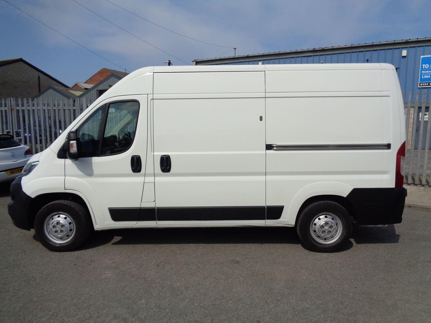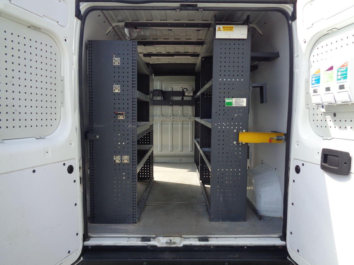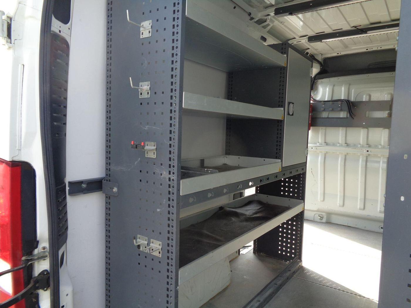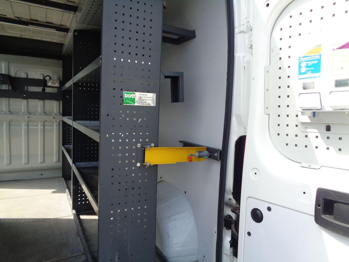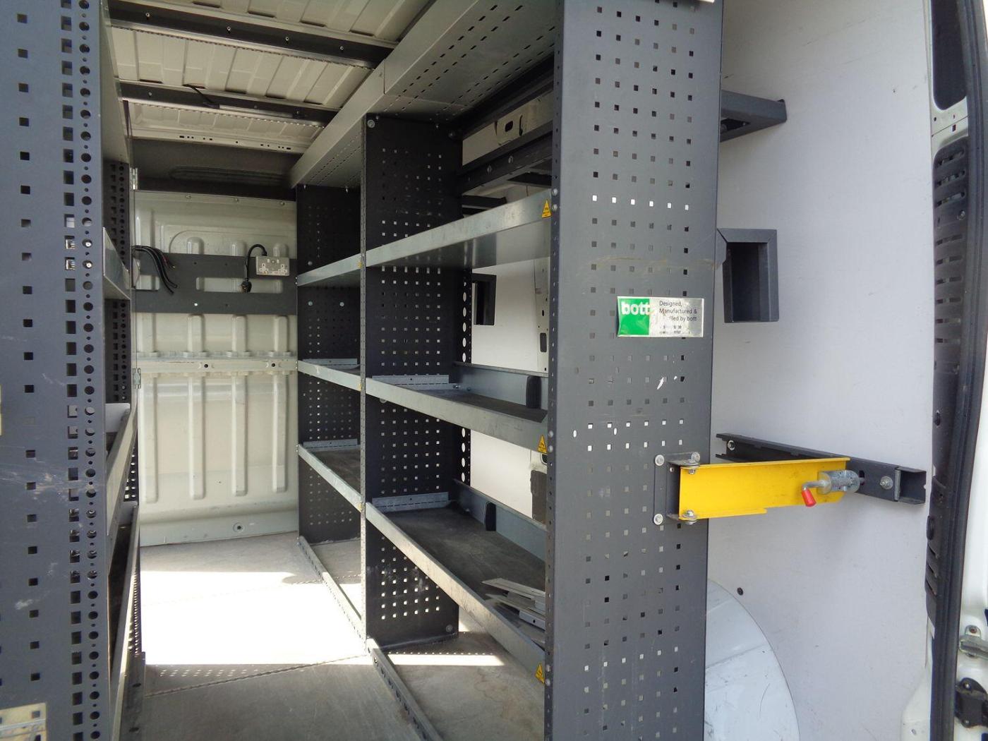 The rear of the van is equipped with racking and sheet material storage to one side, making it ideal for businesses that require a versatile load space. The side loading door and double rear doors provide easy access, while the ply-lined interior helps protect the van's bodywork. For added security, the van is fitted with security locks and comes with spare keys.
